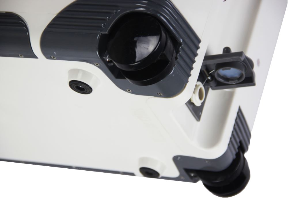 The closing devices for the lids are partially recessed, over center catches designed to compress each lid seal independently on closing.